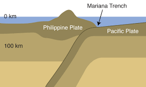 Not this Marianas Trench! The Mariana Trench (or Marianas Trench – however this is also the name of a Canadian punk rock band) is the deepest part of the world’s oceans. How deep you ask? The maximum depth is 11,034 metres deep ( 36 200 ft)…or, just over 11 kilometres (6.8 miles). If Mount Everest was dropped into the Mariana trench, its peak would still be 1.6 km (a mile) underwater . It’s 2, 542 km (1,580 miles) long and 69 km (43 miles) wide. Trench location The trench is part of a global network of deep trenches, called troughs, that cut through the ocean floor. They form when two tectonic plates collide and one plate dives beneath the other into the Earth’s mantle, forming an ocean trench. At the bottom of the trench, the water column above exerts a pressure of 1,086 bars (8 tons per square inch): that’s over 1000 times the standard atmospheric pressure at sea level. How can anything possibly survive down there? The record for deep sea diving for humans is just over 300 meters. We can survive at much greater heights above sea level (providing a source of oxygen). The difference is due to the air within our lungs! Our lung’s capacity exerts only a certain amount of outward pressure. As the difference between the outward pressure in the lungs and the inward pressure of water increases, there is a greater force pushing into the surface of the body. The sheer weight of the water above you is incredible; one cubic metre of water weighs one tonne, so imagine what it’s like to have 11 kilometres worth of pressure on you. At this pressure, the actual density of water changes. The water at the bottom of the Mariana trench has increased by nearly 5%. Therefore, 95 litres of water at the bottom of the Mariana trench will contain the same mass as 100 litres at the surface! Down below, at the bottom of the trench, the temperature ranges between 1 to 4°C, and because it’s so deep, the suns rays can’t reach it, so it’s pitch black at the bottom. At 3,960 meters(13,000 feet) is the abyssal zone, where light no longer penetrates the water and bioluminescent creatures glow in the dark. Conspiracy theory! Although the trench is the deepest part of the ocean, it is not the closest to the center of the Earth. This is because the Earth is not a perfect sphere, but rather is slightly squashed with the smallest diameter at the poles. The radius at the poles is 25 kilometers less than at the equator. Due to this, parts of the Arctic seabed are at least 13 kilometers closer to the Earth’s center than the deepest part of the Mariana trench.The area called ‘Challenger Deep’ is the deepest part of the trench. Humans have only entered it twice. First in 1960 in a US Navy bathyscaphe called the Trieste. It took five hours to get down there and then it was too cloudy to see anything other than a flatish looking fish. But this did confirm that life at those crushing pressures was possible. Then in 2012, James Cameron descended in the Deepsea Challenger alone. This time taking just two hours to descend, the craft was able to pick-up samples and film the dark depths. Foraminifera – filaments catch food. So what’s down there? Well, there’s amphipoda, which are a bit like shrimp. Then there’s the sea cucumbers which are echinoderms. This type lay on the ocean floor all facing the same direction to catch small meals as they drifted by. There are also Foraminifera which are protists and Xenophyophores which are so delicate it wasn’t possible to collect samples…plus, the odd jellyfish. Therefore we see that biodiversity decreases with depth. So it’s a pretty uninspiring place down there. No colour and little movement; all very different to the ocean surface. Leave a Reply Cancel Reply Your email address will not be published. Name* Email* Website Are You Human? * 9 + = twelve Comment
